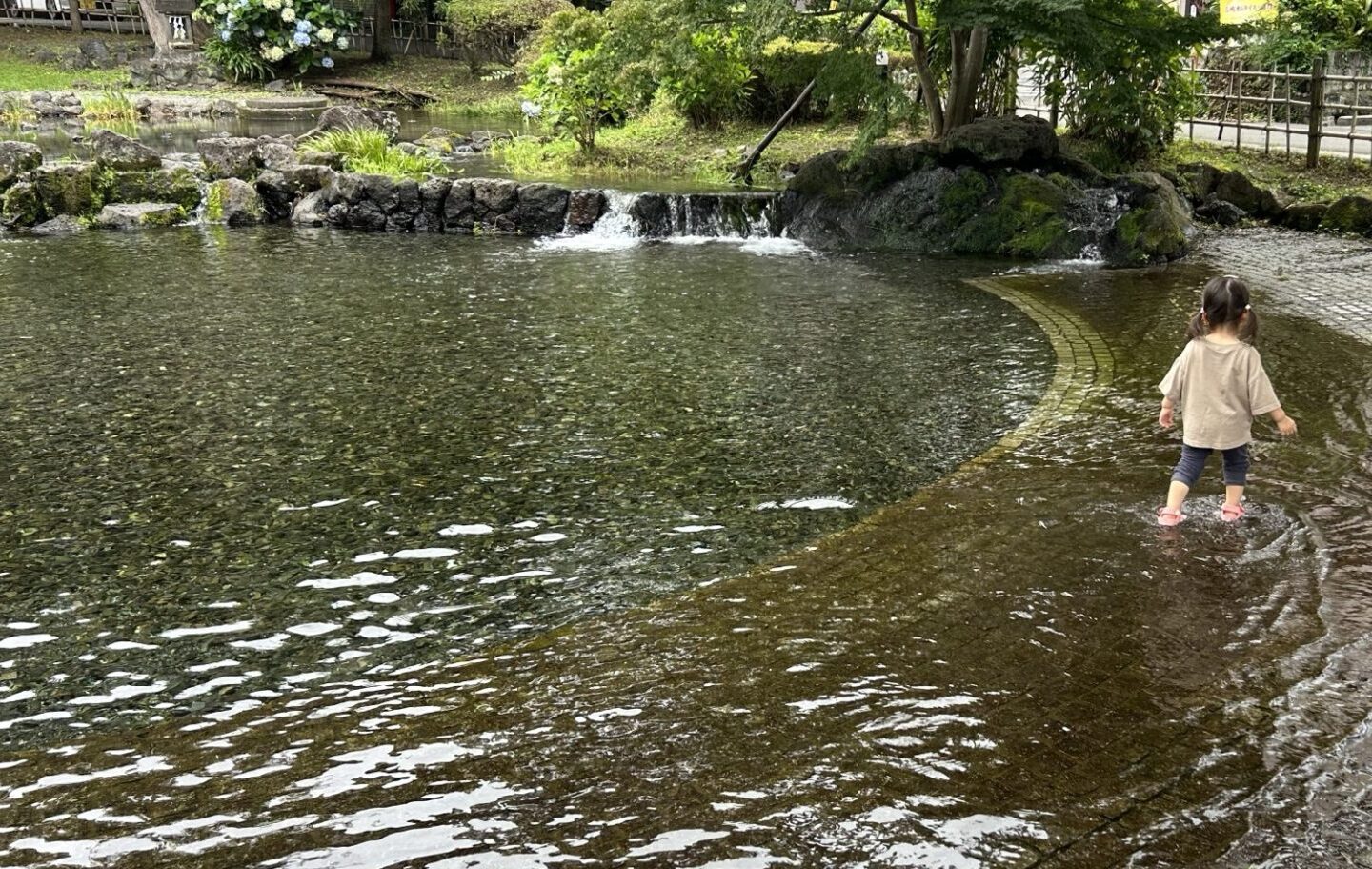 夏はキンキンに冷えた湧水で水遊び。一瞬で汗が引きます。