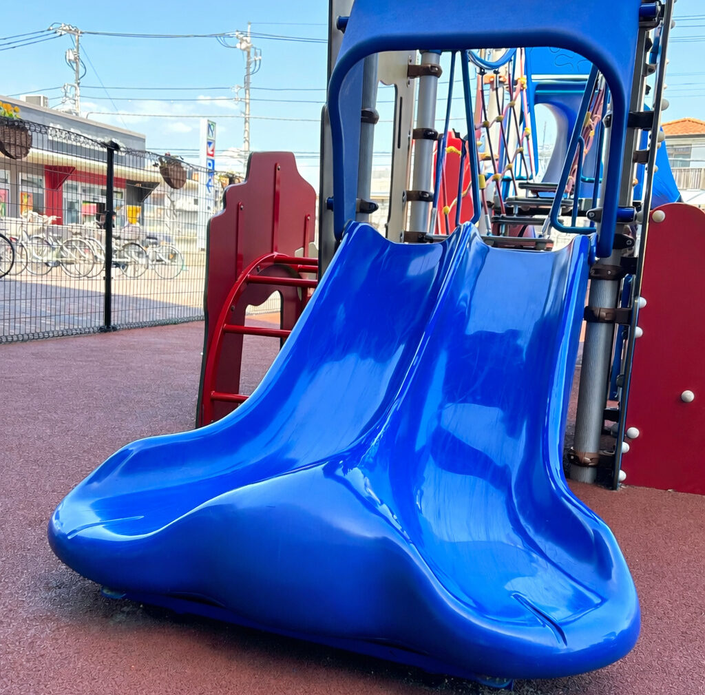 ここの何が助かるって、外にちょっとした滑り台があること。買い物を終えて「さあ帰るよ」となるとグズる子どもも、「外の滑り台で1回だけ遊んで帰ろう」という約束でスムーズに動いてくれる。この「ちょっとした遊具」に、何度救われたか分かりません。